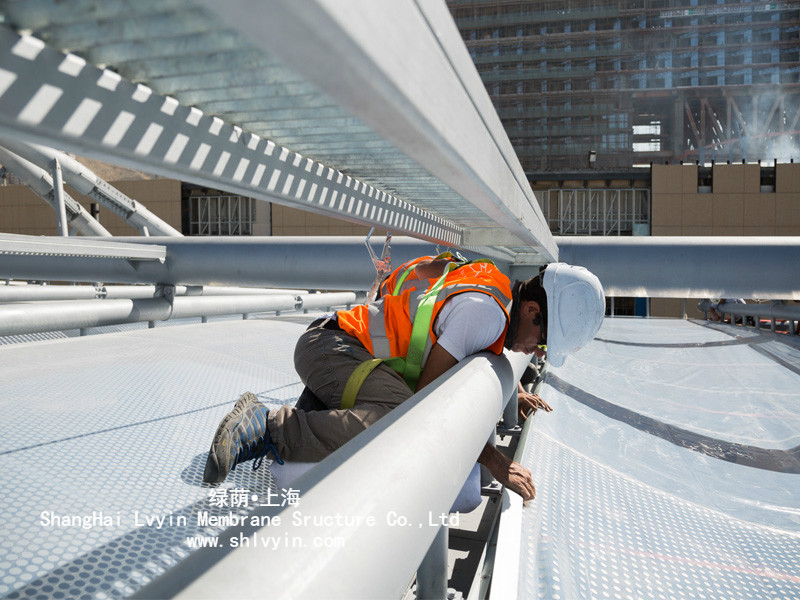 1)ETFE膜是由人工高強度氟聚合物(ETFE)制成,其特有抗粘著表面使其具有高抗污,易清洗的特點,通常雨水即可清除主要污垢。