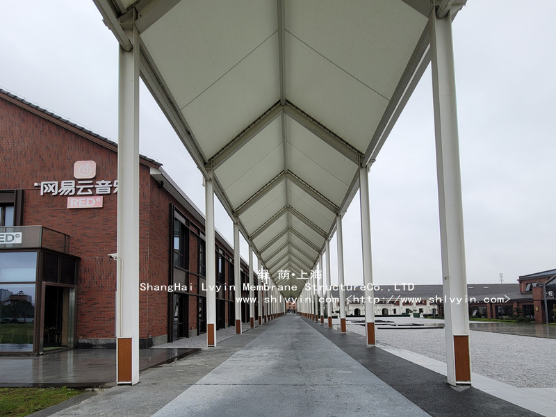位于寧波文創港規劃運河區,架起了一處膜結構長廊,采用進口PTFE膜材: